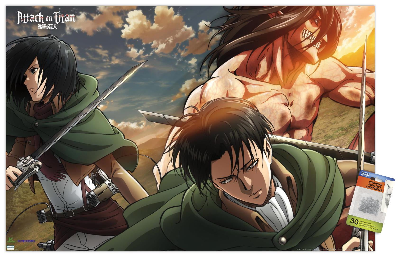 Attack On Titan Season 2 Trio Wall Poster With Pushpins 22 375 X 34 Walmart Com
